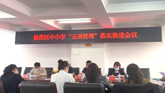 五月中旬船营区召开了中小学校“五项管理”工作落实推进会。区教育局局长于洪飞出席会议并讲话。教育督导室主任于艳解读了“五项管理“专项督导工作方案,并对此项工作作了具体安排。“五项管理”的责任科室负责人就分管工作进一步明确要求。局机关各科室和责任督学要严格执行“五项管理”规定,将国家、省、市文件要求落实落细。要把“五项管理”的责任进一步压实,抓住工作重点,坚持效果导向,把“五项管理”工作落到实处。要加大问责力度,对“五项管理”督导发现的问题整改不到位的,要进行通报、约谈,对违反规定造成不良后果的,要追究相关责任人责任。
