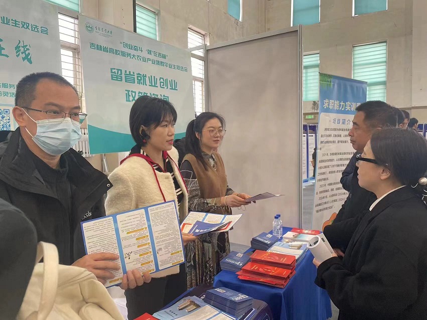 3月20日,吉林省人社厅联合省农业农村厅、省教育厅、省工商业联合会、吉林农业大学共同举办了“创业奋斗‘就’在吉林”吉林省高校服务大农业产业集群毕业生双选会 。