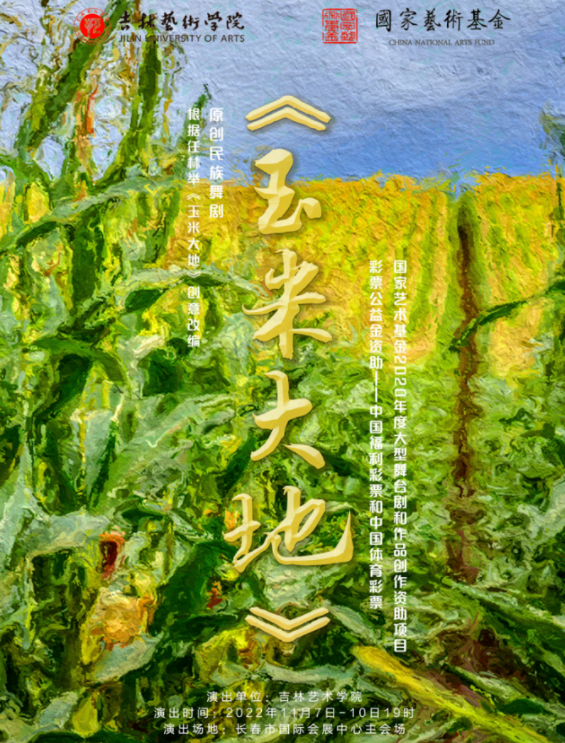 2022年11月8日19时,吉林艺术学院国家艺术基金2020年度大型舞台剧和作品创作资助项目——原创民族舞剧《玉米大地》在长春国际会议中心主会场拉开帷幕,并将于11月9日举行专家研讨会。