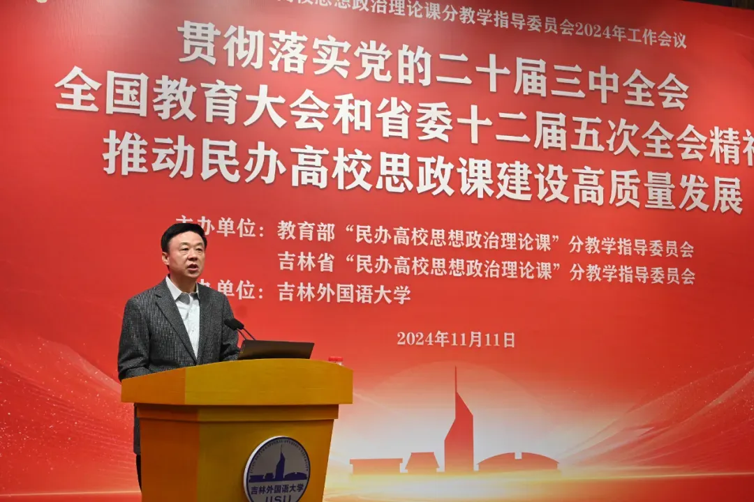 11月11日上午,吉林省民办高校思政课分教学指导委员会2024年工作会议在吉林外国语大学召开。省教育厅党组书记、厅长,省委教育工委副书记张洪彬出席会议并讲话。吉林省民办高校思政课分教学指导委员会全体委员,各民办高校校长,省教育厅有关负责同志参加会议。
