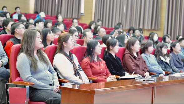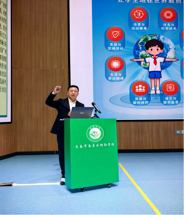 图1:南关区树勋学校党支部书记兼校长任国权现场讲座