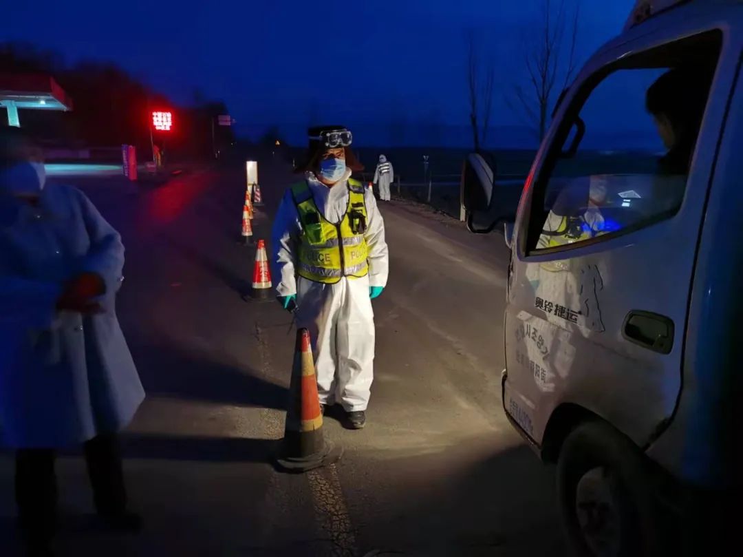 教育系统志愿者夜晚在卡点执勤