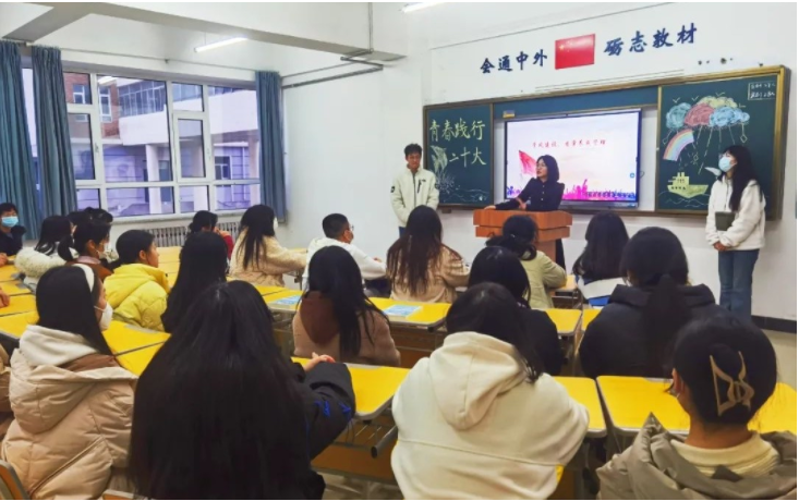 吉林外国语大学“开学第一课”通过晚班会形式举行,各班级以“青春践行二十大”为主题,在辅导员的组织下,交流思想心得,畅谈新学期、新目标、新规划。国际传媒学院班会涵盖学习党的二十大精神、心理健康、流感预防、安全教育、新学期规划等主题,各班级认真准备板报、制做条幅,写下新的目标和愿景。